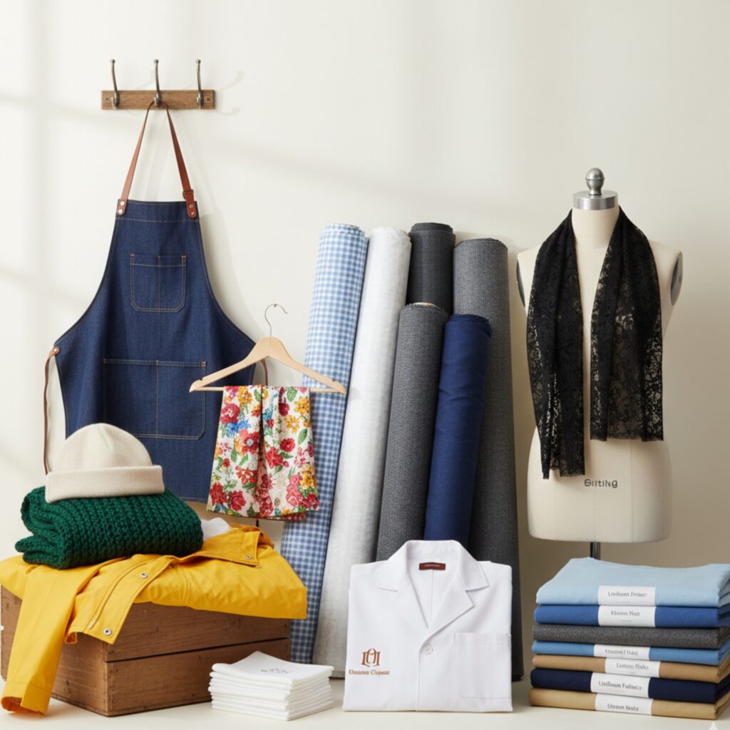 Shirting, Suiting, Blouse piece, Rain coat, Woolen cap, Woolen shall, Scraf-Net, Handkerchief, Lab Coat, Apron, Uniform Fabrics,